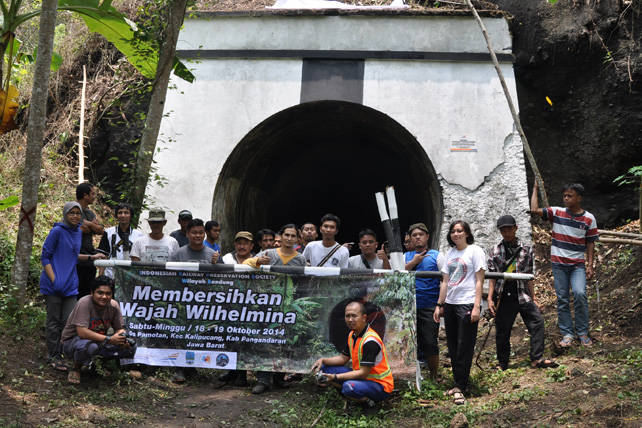 Setelah dirasa cukup bersih, maka langkah selanjutnya yaitu mengecat mulut terowangan dengan warna dominan putih dan pemberian aksen warna hitam pada bagian tengah terowongan. Setelah itu, pada bagian sisi kanan terowongan dipasang sebuah plakat cagar budaya. Plakat cagar budaya ini dipasang sebagai identitas bahwa Terowongan Wilhelmina merupakan bangunan cagar budaya yang dilindungi undang – undang No.11 tahun 2010. Setelah itu seluruh peserta bakti prasarana melakukan foto bersama sebagai bagian dari dokumentasi acara.