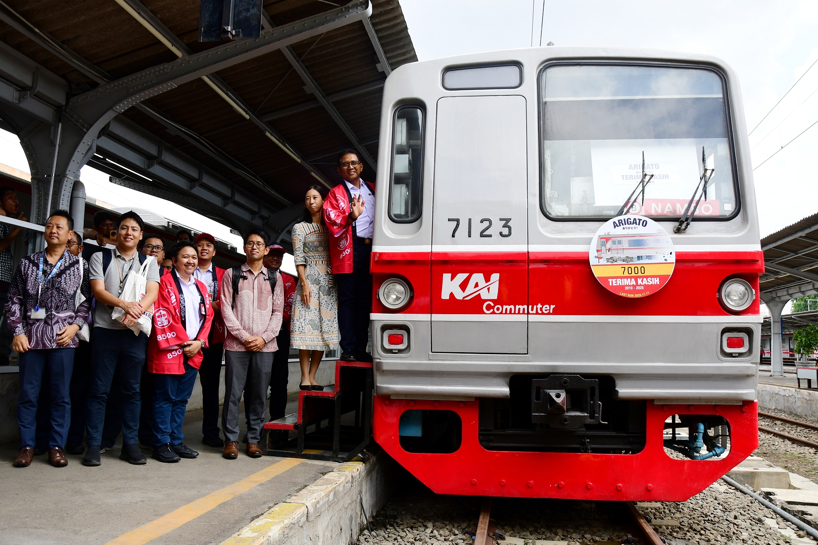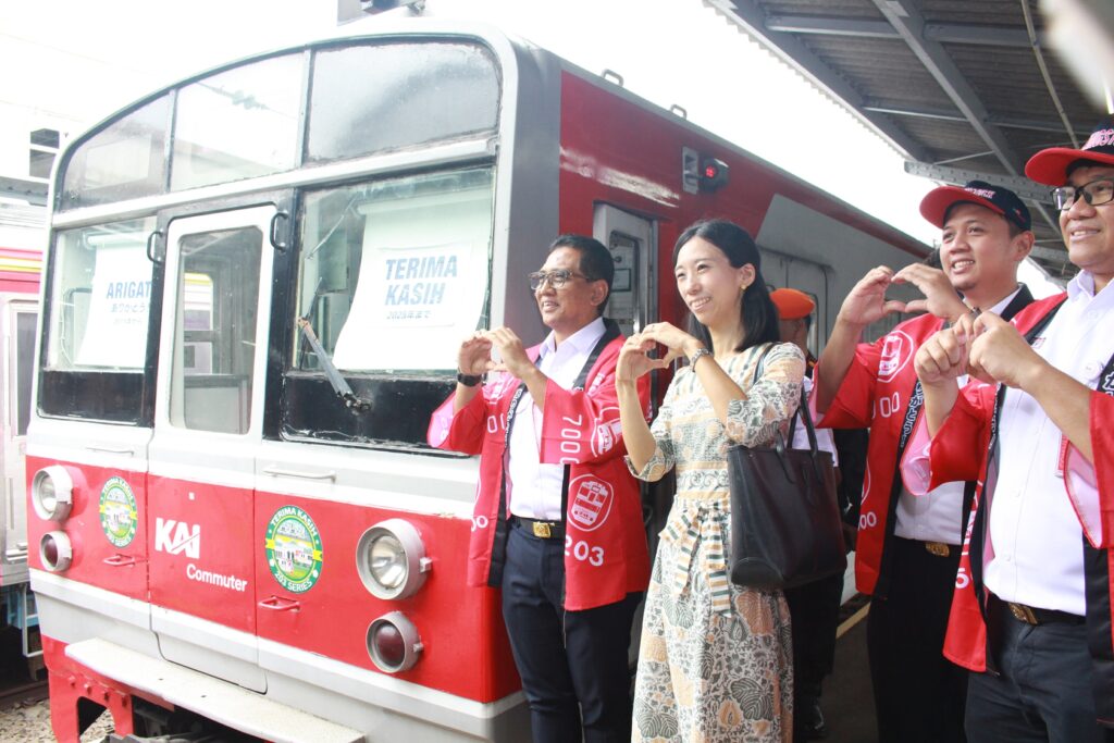 Direktur Utama KAI Commuter Asdo Artriviyanto dan Penasihat Urusan Ekonomi dan Pembangunan Kedutaan Besar Jepang untuk Indonesia Reiko Kamigaki usai simbolis “Last Run” KRL seri 203 (Irvan Alaidrus Ilyas/IRPS Jakarta)