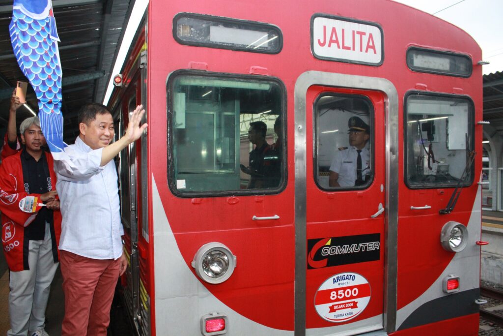 Direktur Utama KAI periode 2009-2014 Ignasius Jonan bersama rangkaian 8618F (Irvan Alaidrus Ilyas/IRPS Jakarta)