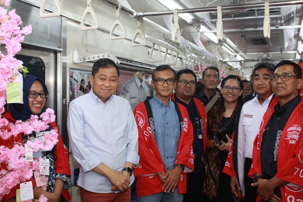Jonan bersama Direktur Utama KAI Commuter periode 2008-2015 Tri Handoyo, VP Public Relations KAI Anne Purba, EVP KAI Daop 1 Jakarta Yuskal Setiawan, dan Direktur Utama KAI Commuter Asdo Artriviyanto di dalam rangkaian 8618F (Irvan Alaidrus Ilyas/IRPS Jakarta)