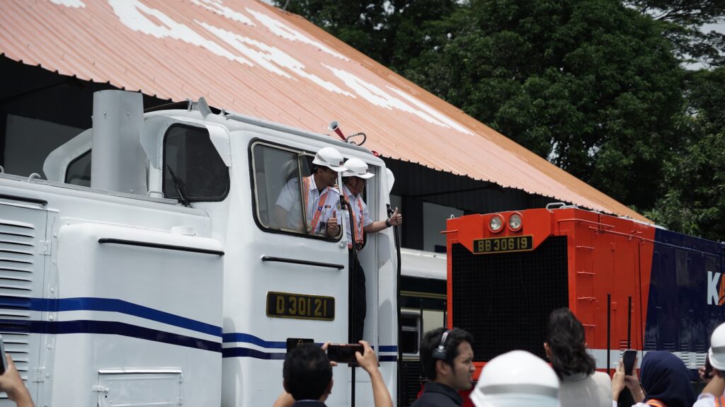 Wakil Direktur Utama KAI Dody Budiawan dan EVP Balai Yasa Manggarai Istiko Teguh Prasetyo di atas lokomotif D30121 (Ainur Rofiq Alichwan/IRPS Jakarta)
