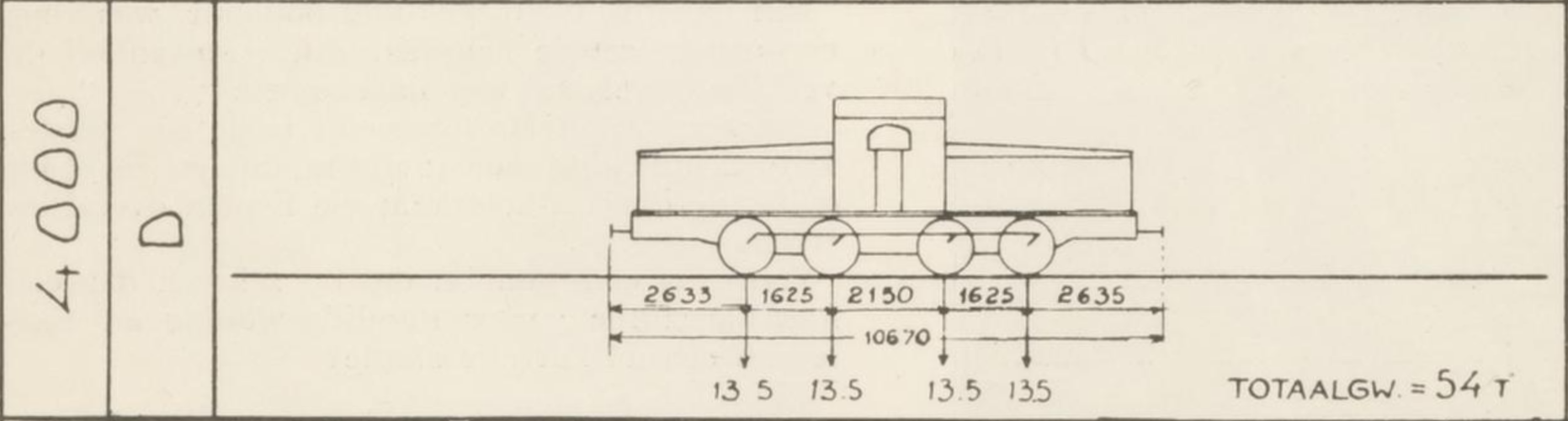 Secara teknis, lokomotif ini dilengkapi empat gandar yang dihubungkan dengan batang kopel. Lokomotif ini sudah menggunakan alat perangkai genggam yang sudah termasuk perdijk sebagai adaptor dari alat perangkai Norwegia (ganco), serupa dengan alat perangkai pada rangkaian KRL milik ESS. Kecepatan maksimal lokomotif ini hanya 20 km/jam dengan total berat 54 ton, bertenaga 90 dk, serta dicat menggunakan warna hijau-merah. Hal ini membuat lokomotif seri 4000 berbeda dari lokomotif milik ESS lainnya yang menggunakan warna coklat.