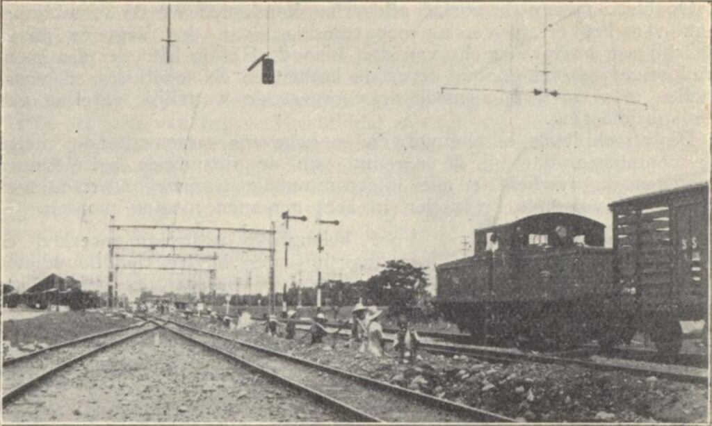 Lokomotif listrik seri 4000 tampak melangsir gerbong kayu di Batavia (Majalah Spoor En Tramwegen edisi 12 Mei 1931)